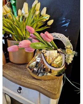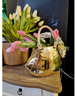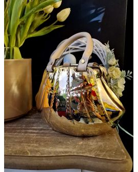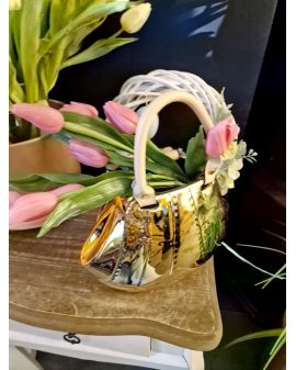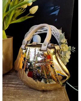 WAZON W KSZTAŁCIE TOREKI ZE SKÓRZANYMI USZAMI model II złoty