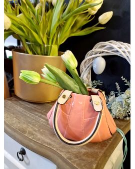 WAZON W KSZTAŁCIE TOREKI ZE SKÓRZANYMI USZAMI model I różowy