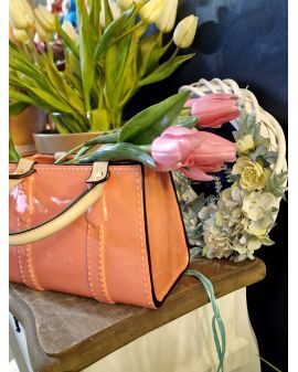 WAZON W KSZTAŁCIE TOREKI ZE SKÓRZANYMI USZAMI model IV różowy