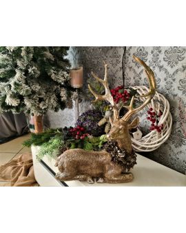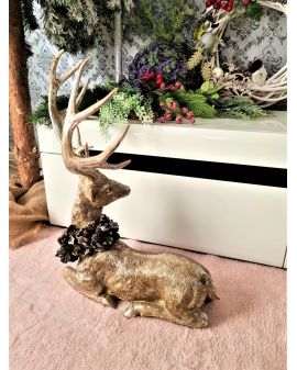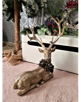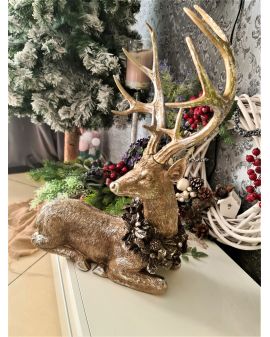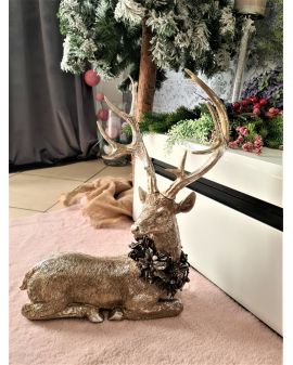 DUŻY BEŻOWY BOŻONARODZENIOWY JELEŃ - brokatowy
