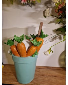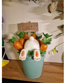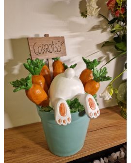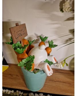 FIGURA WIELKANOCNA - ZAJĄC KRÓLIK W DONICZCE Z MARCHEWKAMI