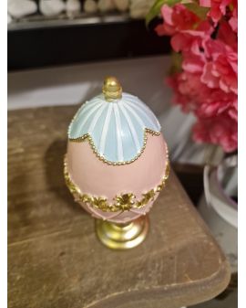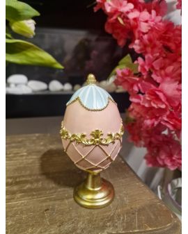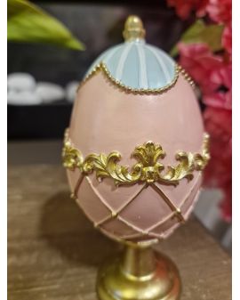 FIGURA WIELKANOCNA - ELEGANCKIE JAJKO PISANKA model II błękitno-różowe