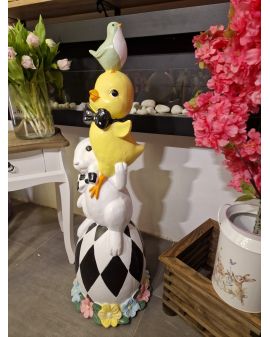 FIGURA WIELKANOCNA - ZAJĄC Z KURCZAKIEM NA PISANCE - XL
