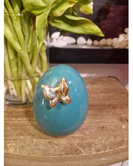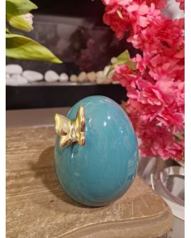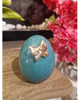 FIGURA CERAMICZNA - CERAMICZNE JAJKO PISANKA Z MOTYLEM - zieleń