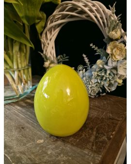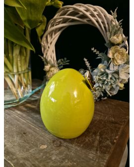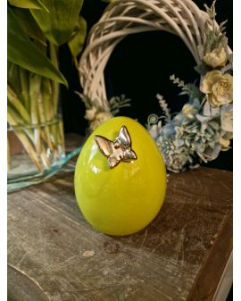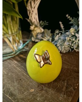 FIGURA CERAMICZNA - MAŁE CERAMICZNE JAJKO PISANKA Z MOTYLEM - limonka