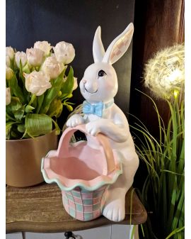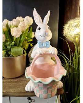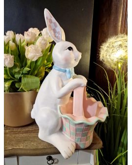 FIGURA WIELKANOCNA - PASTELOWY ZAJĄC KRÓLIK Z KOSZEM model I