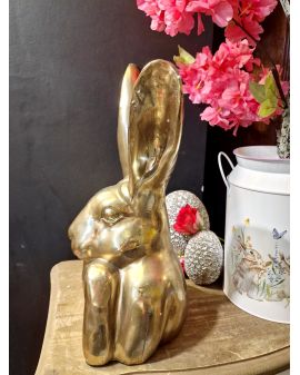 FIGURA CERAMICZNA - DUŻE POPIERSIE ZAJĄCA KRÓLIKA - złoty XL