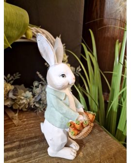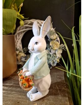 FIGURKA OZDOBNA - ZAJĄC / KRÓLIK WIELKANOCNY z koszem marchewek